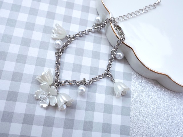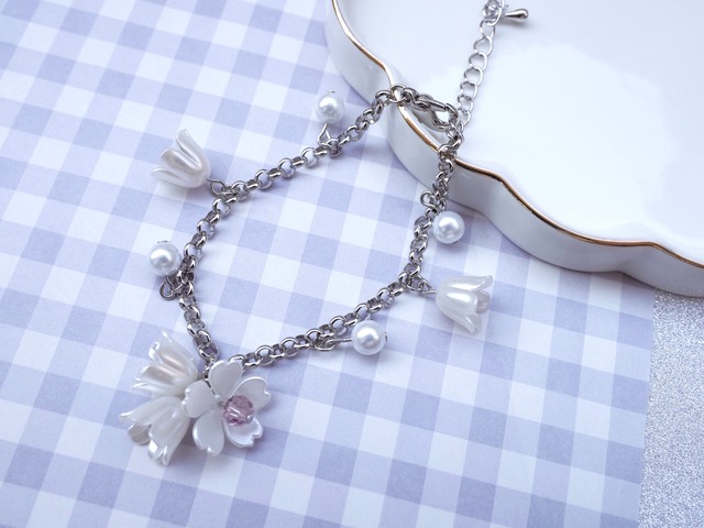 パールフラワーブレスレット(ホワイト)