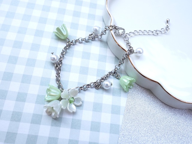パールフラワーブレスレット(グリーン)